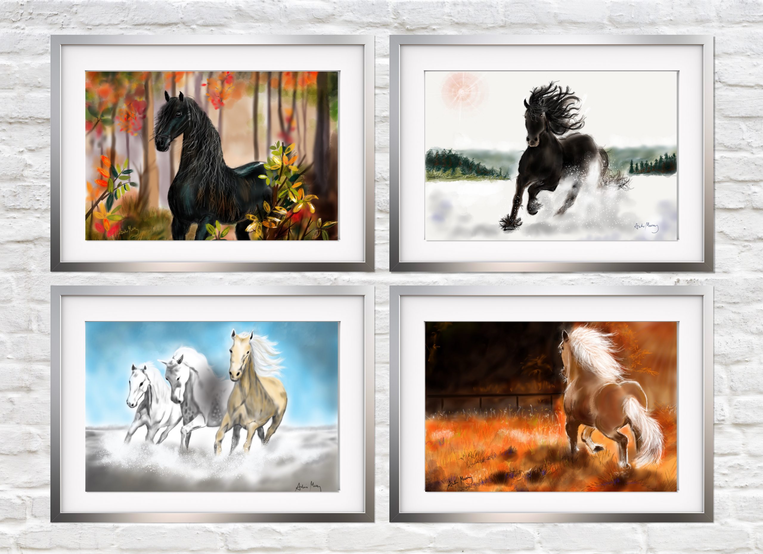 All Four Elegant Horses Prints (A5) (Limited Time Sale)