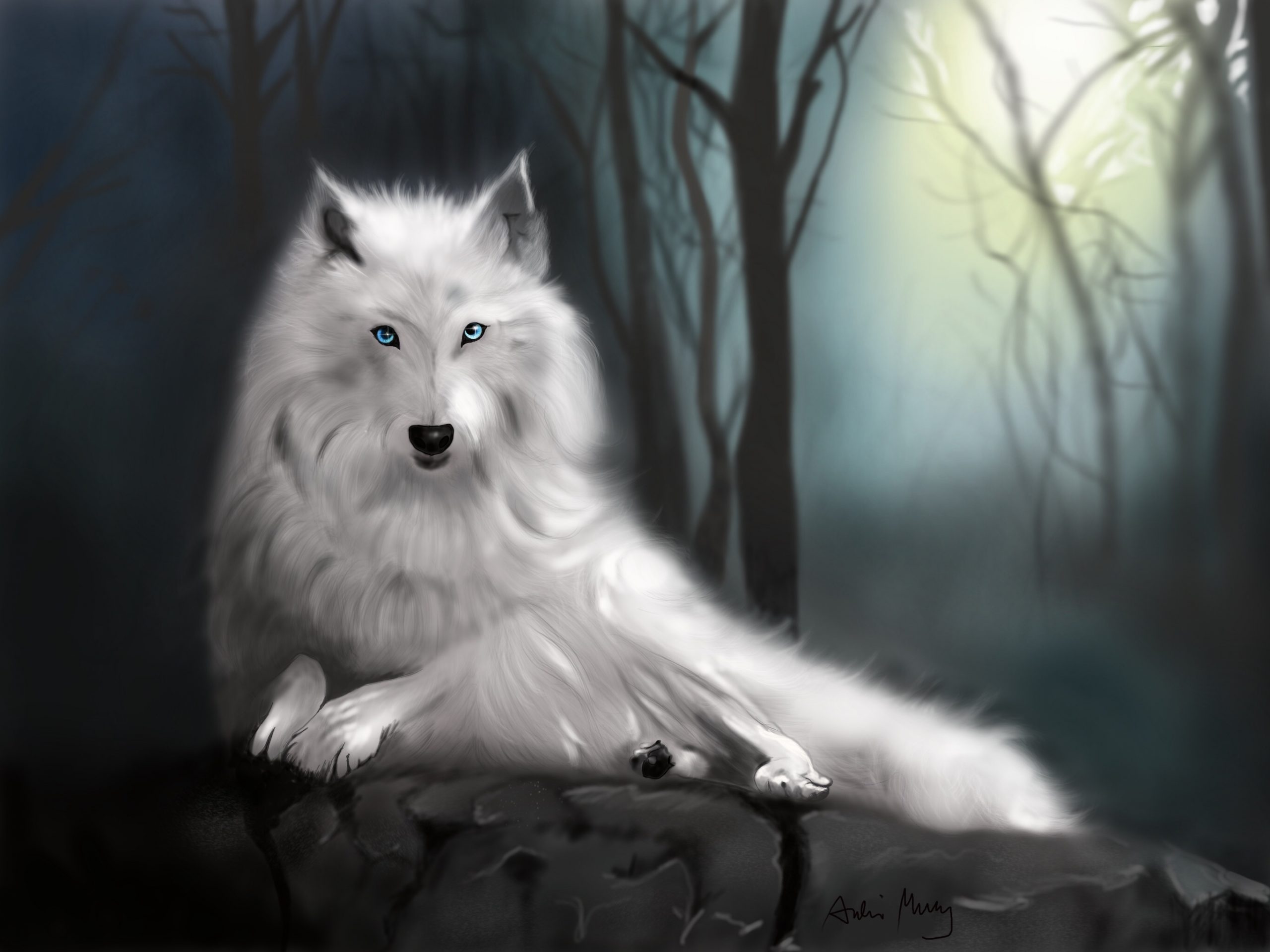 Many years ago I read the Twilight books, and I had wolves on my mind at the time I wanted to portray a very majestic and beautiful wolf, which I did here. His name is San.